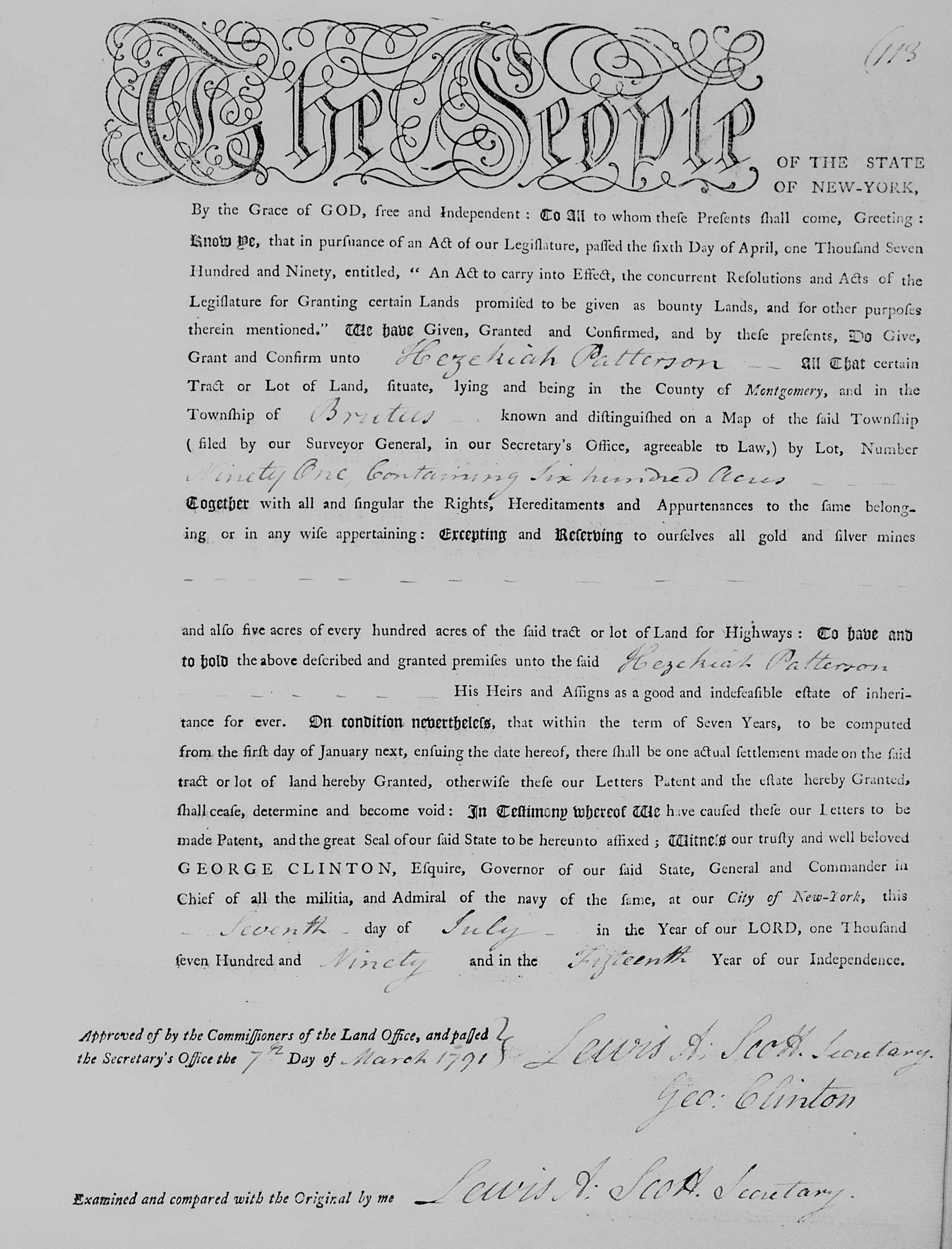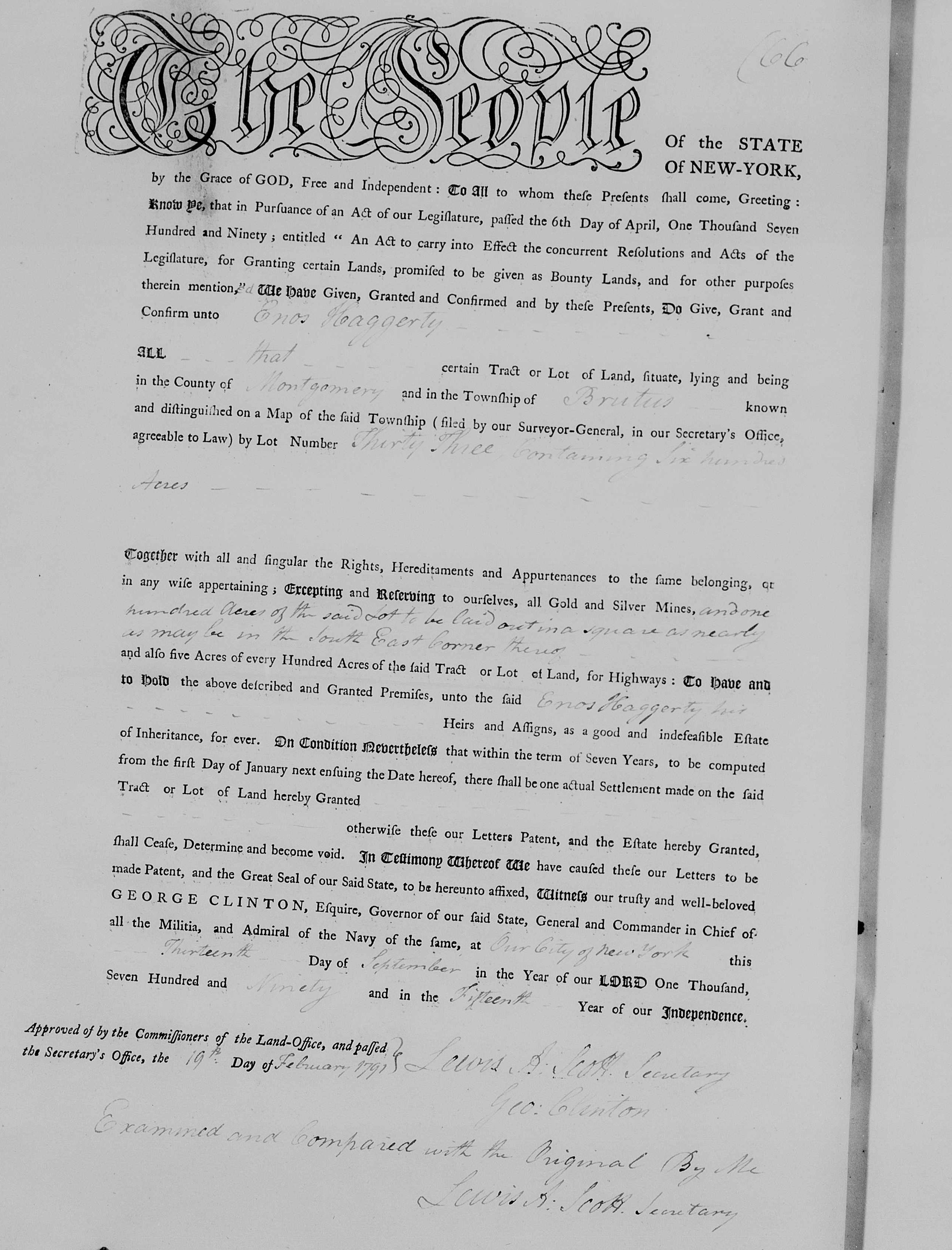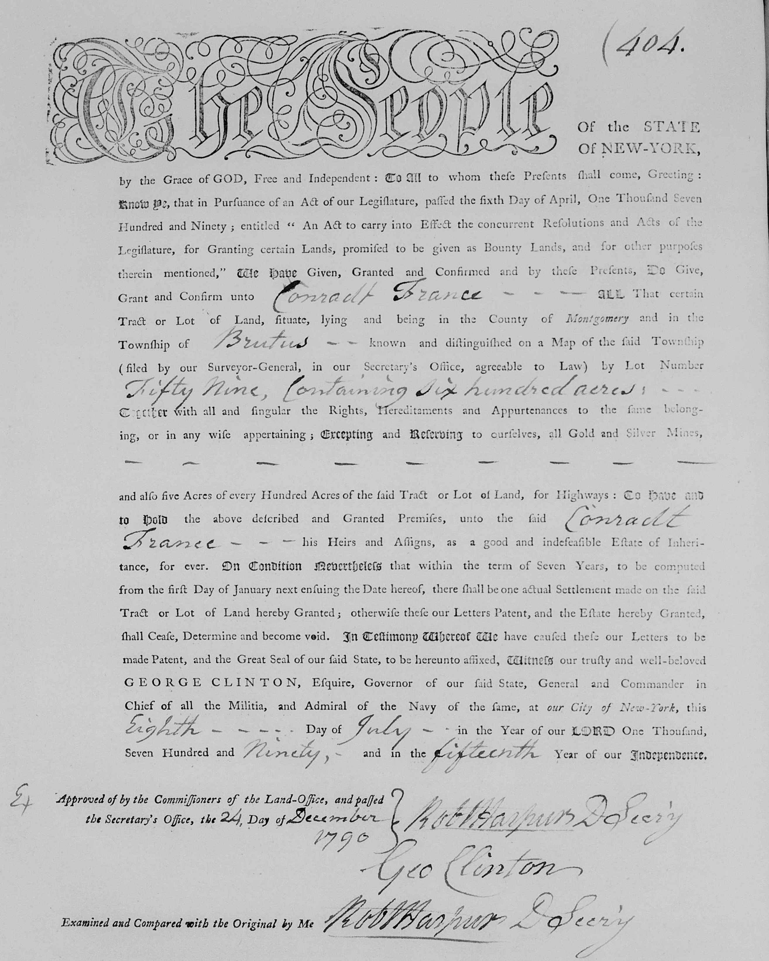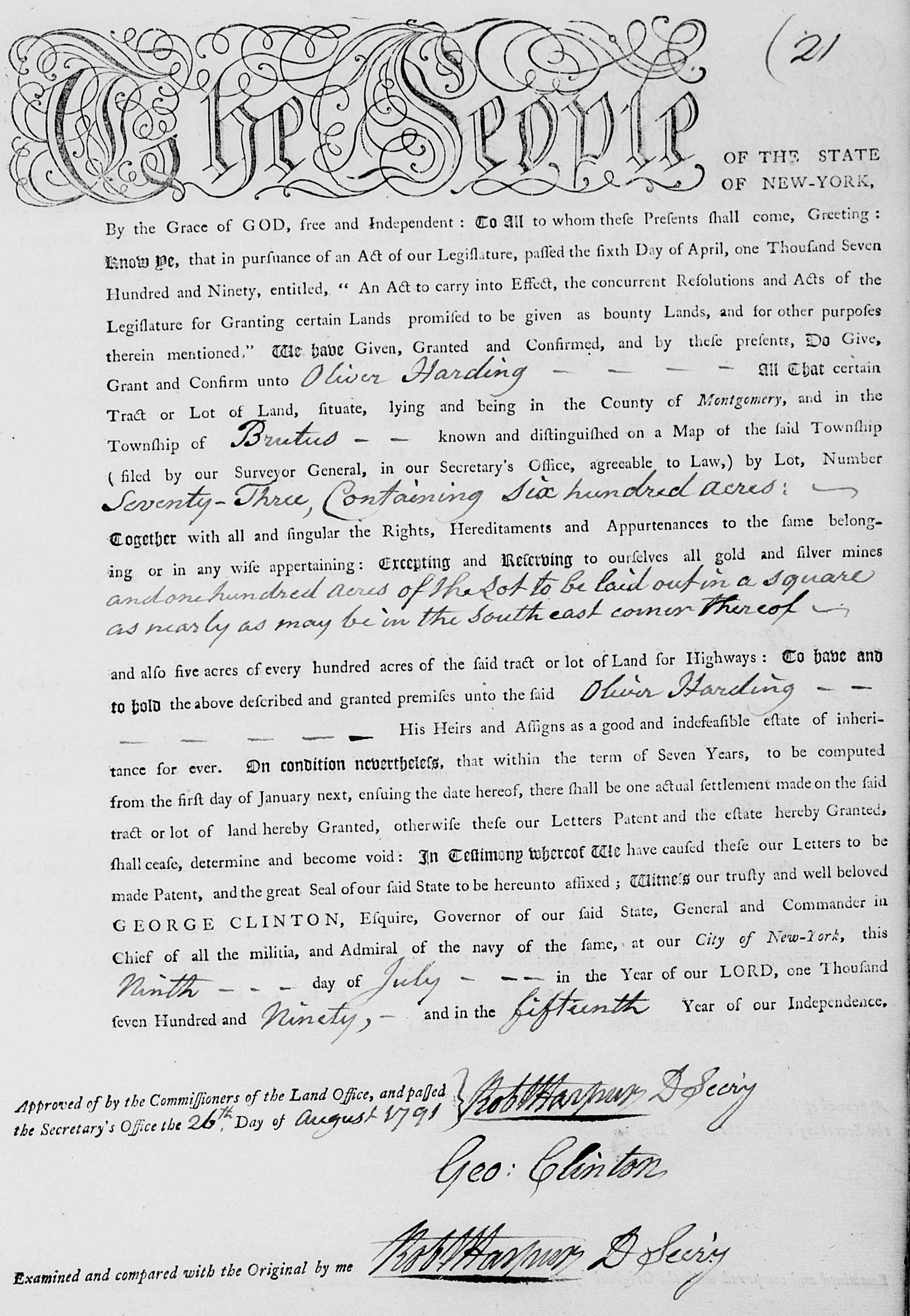 The circa 1790 map showing bounty land lots within Township #4 - BRUTUS, can be viewed HERE |