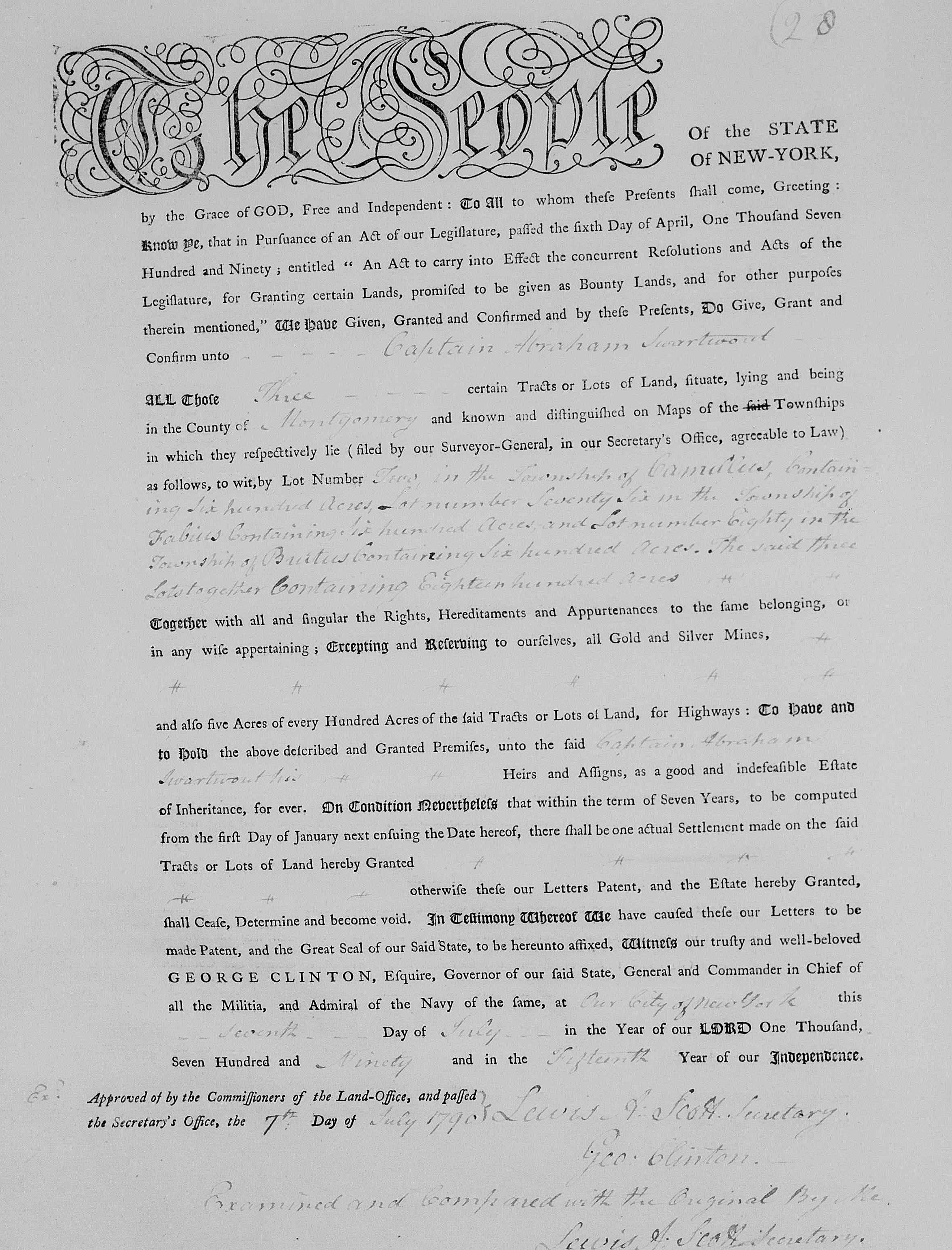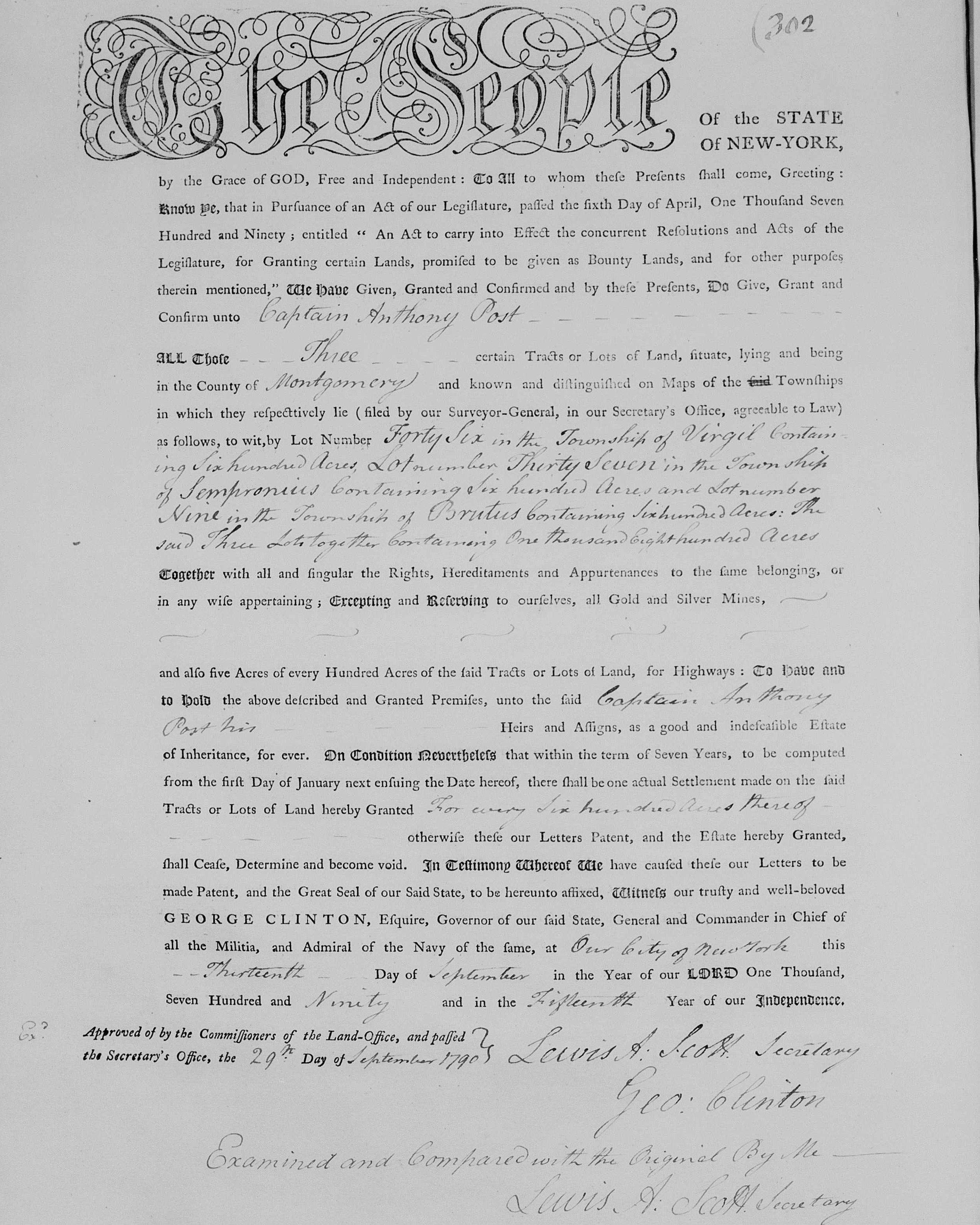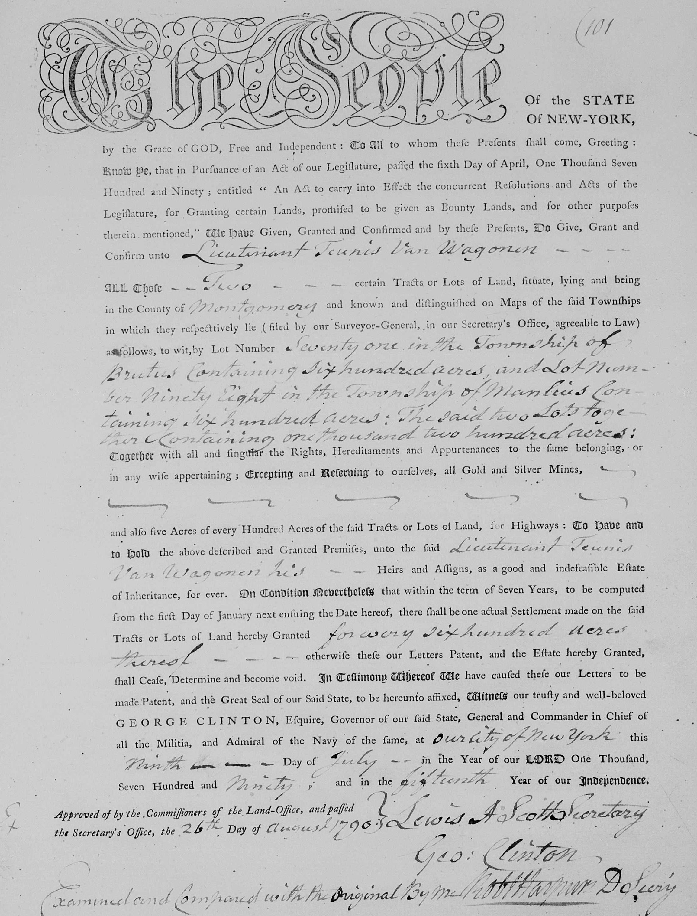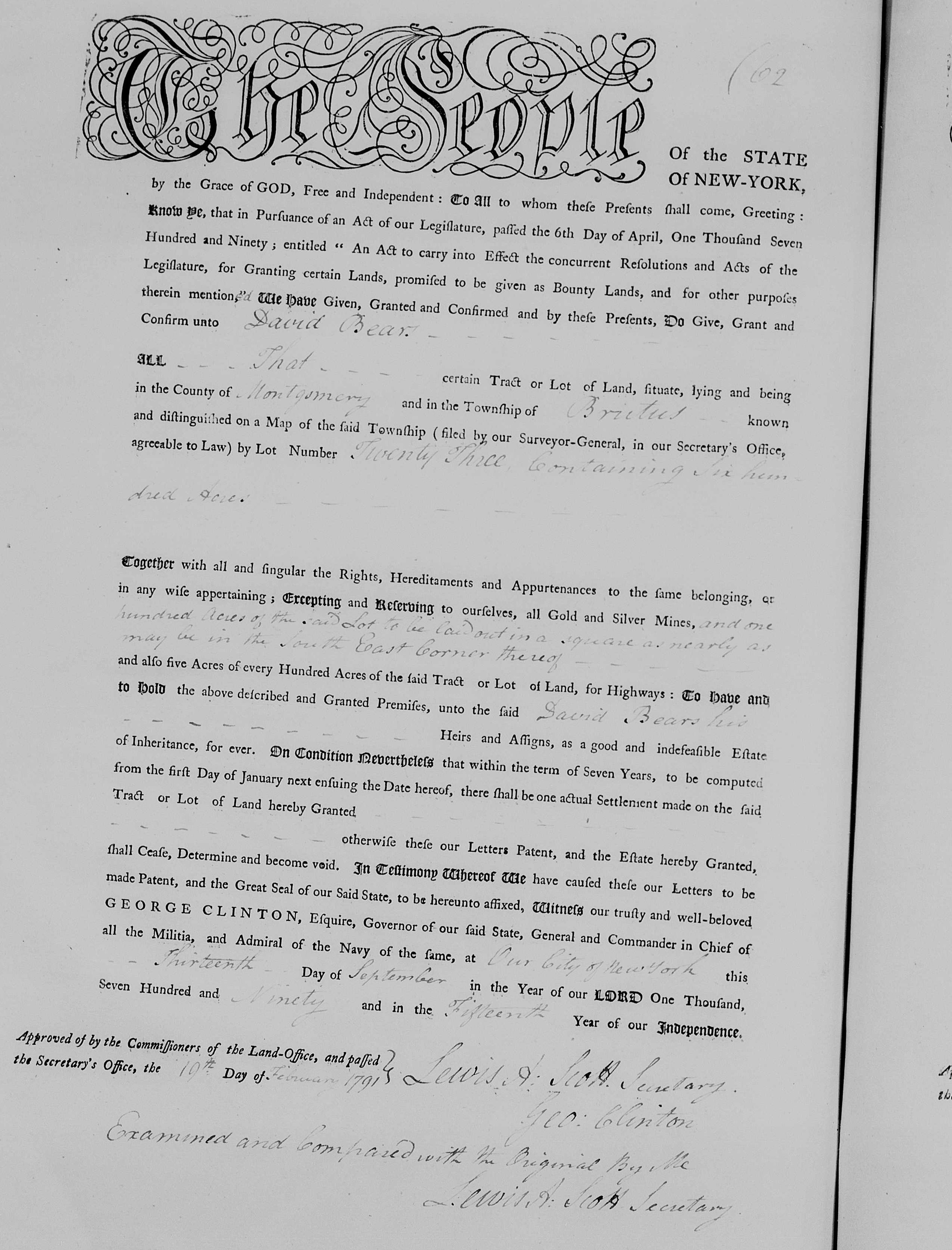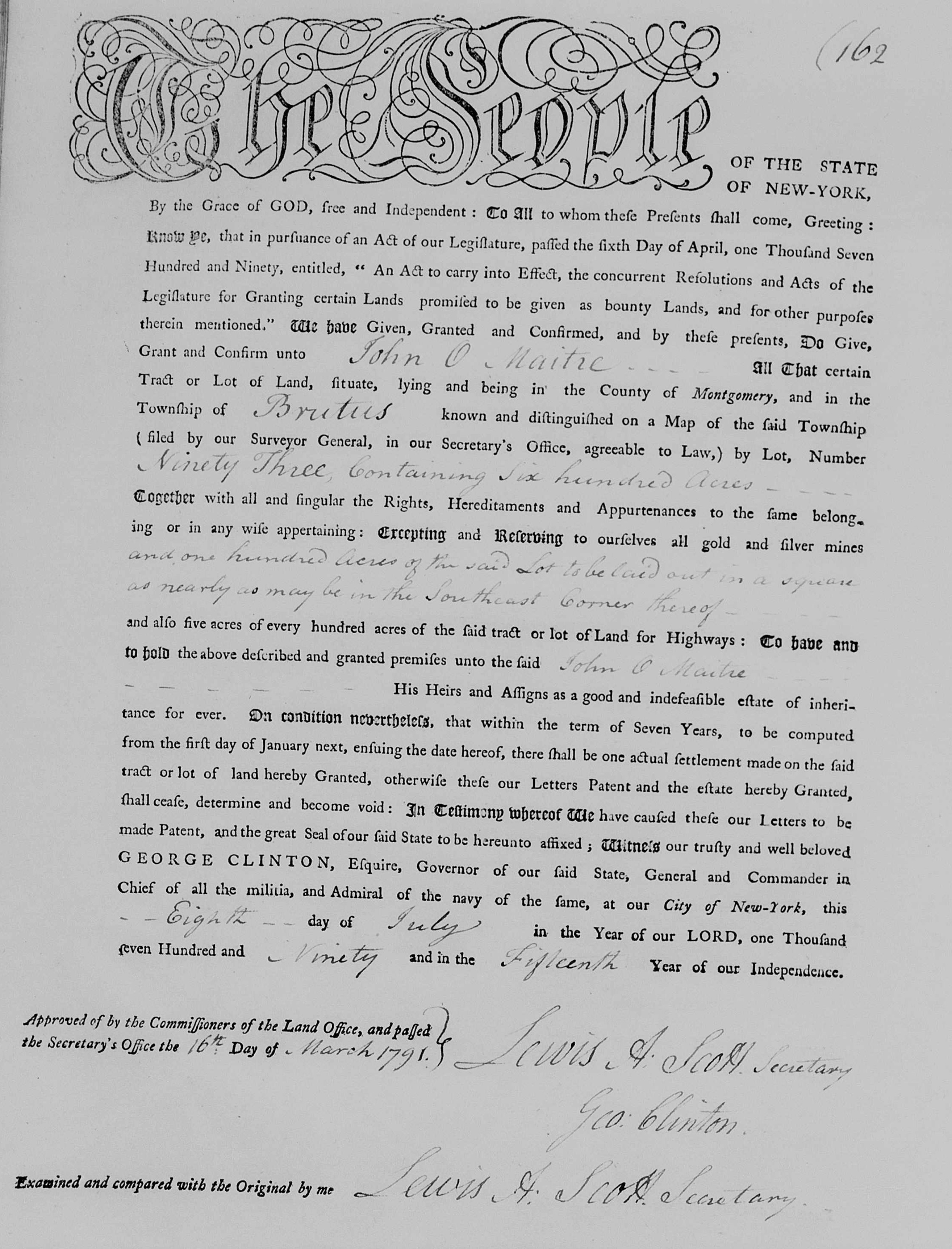 The circa 1790 map showing bounty land lots within Township #4 - BRUTUS, can be viewed HERE |