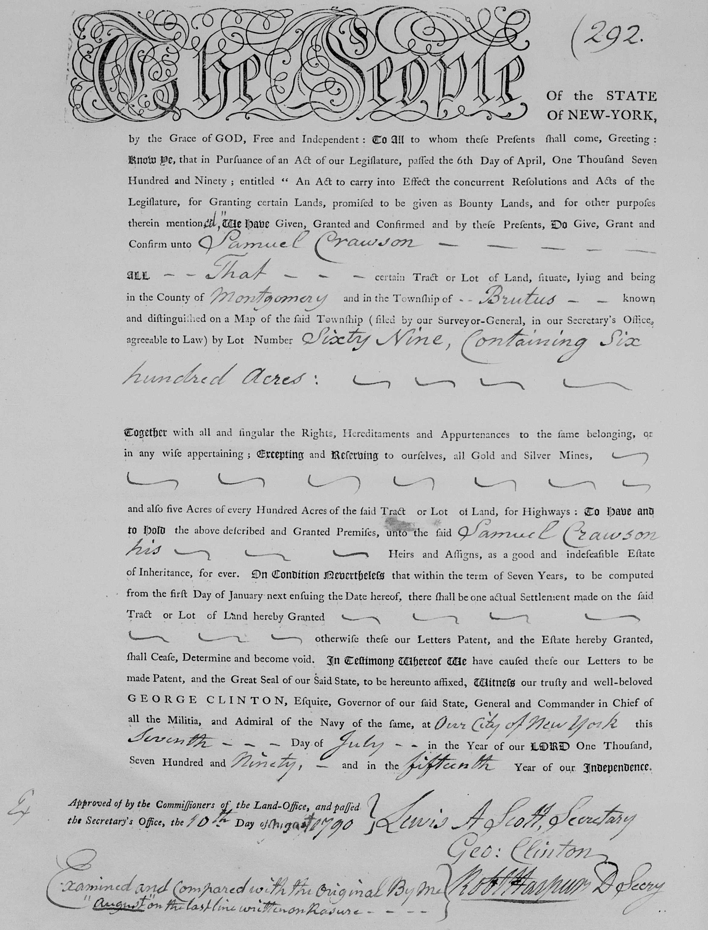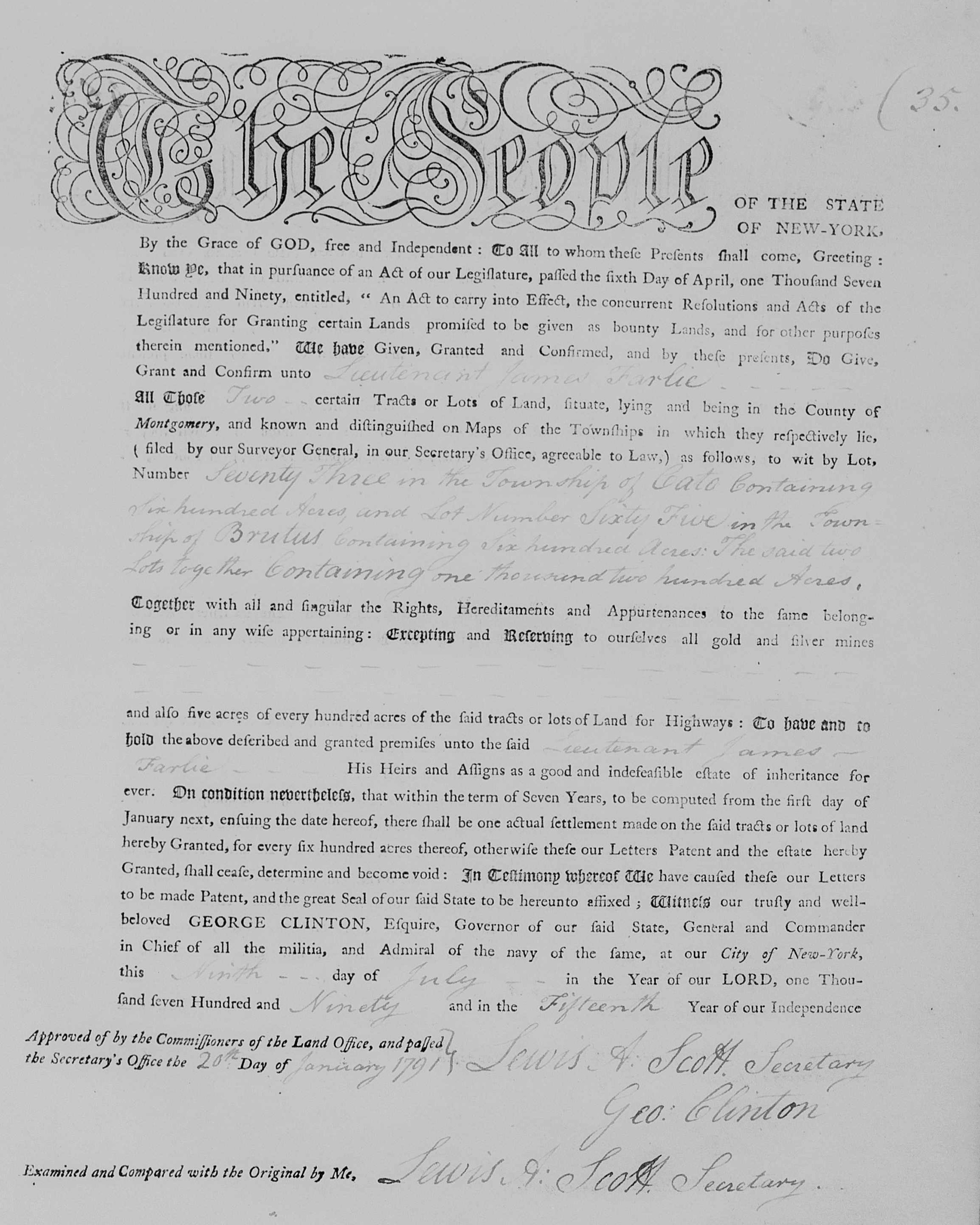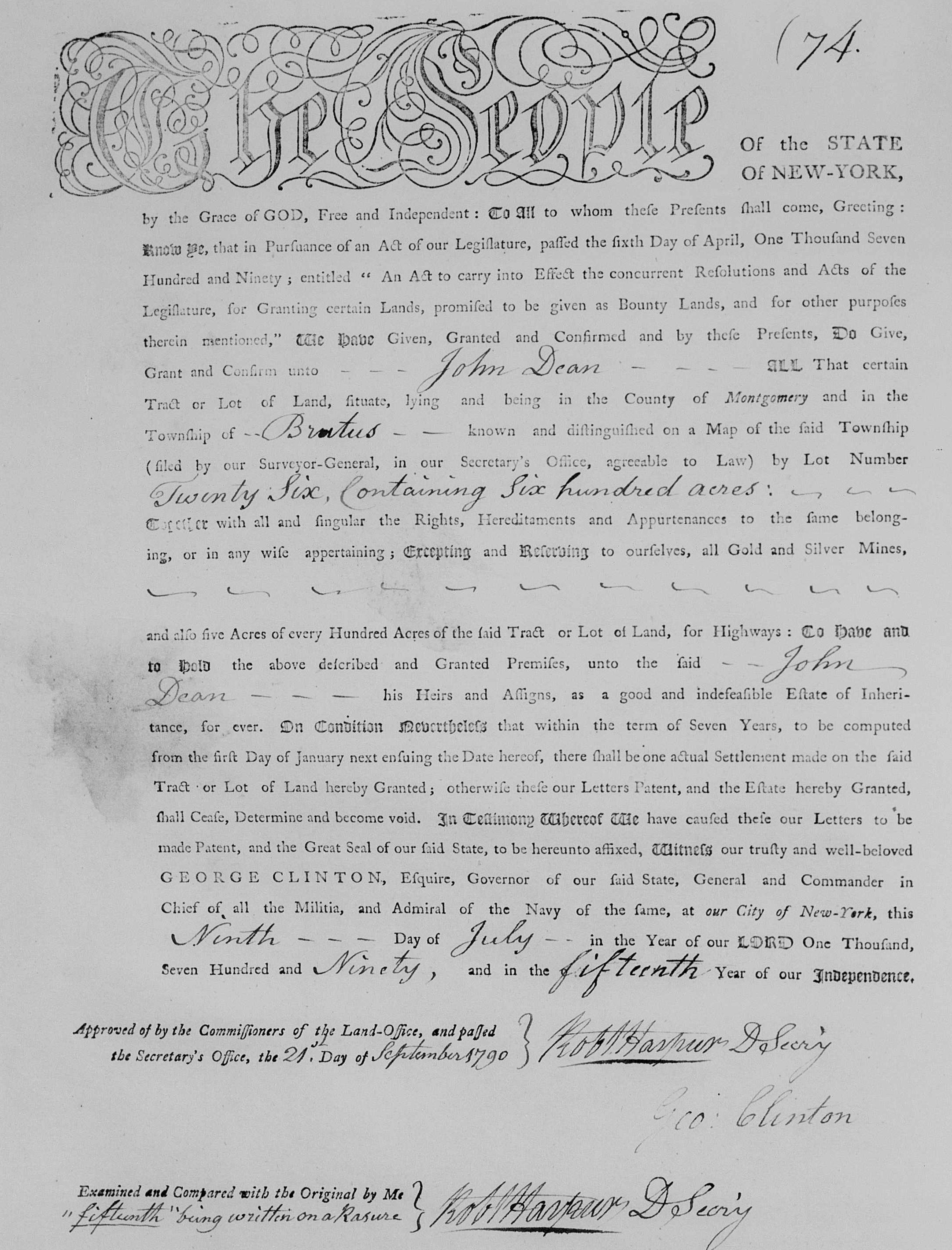 The Sept. 1790 surveyor field notes for lots within the military tract 'Township #4' - Brutus, can be viewed HERE